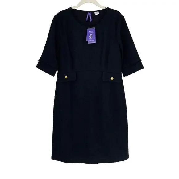 A polished black ponte-knit maternity dress designed for comfort and a professional look throughout pregnancy. The softly structured knit offers gentle stretch and support, while the clean lines keep it office-appropriate and easy to style.