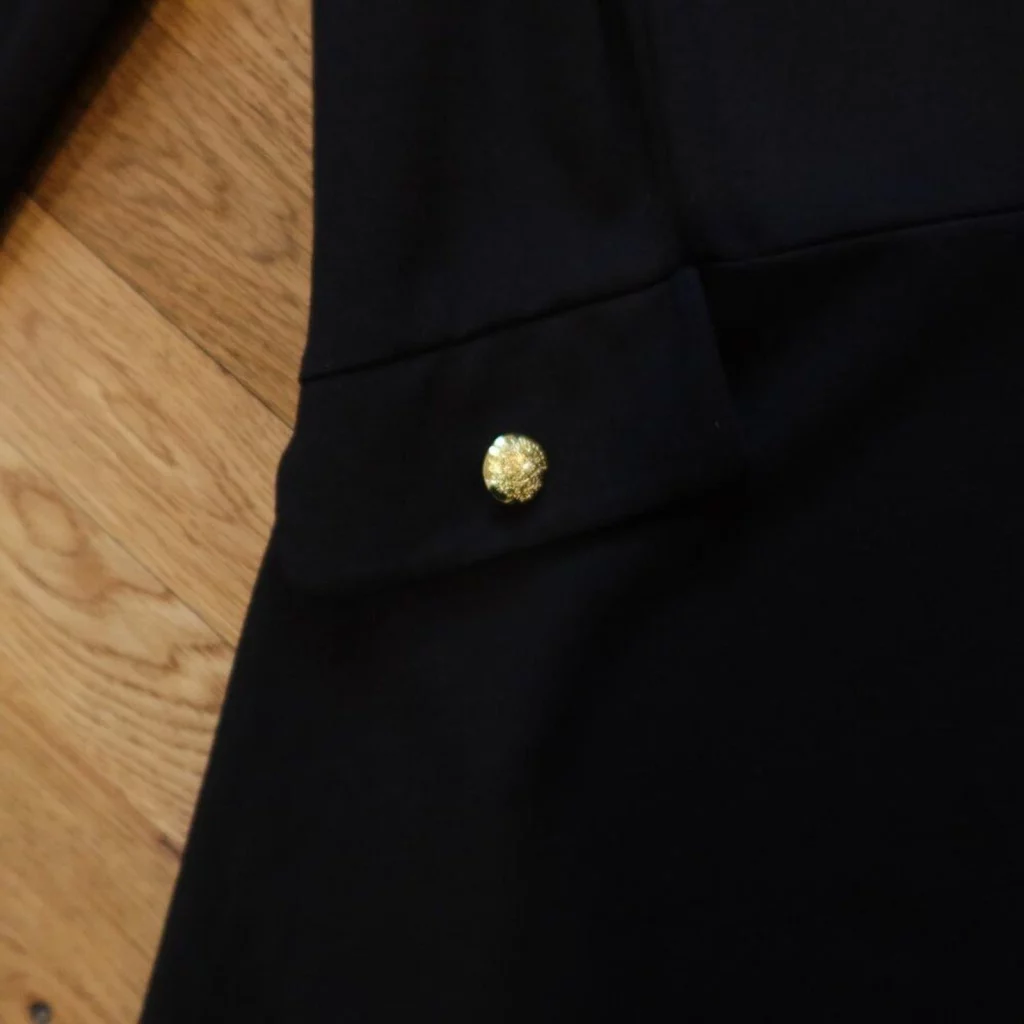 Neckline & Sleeves: Classic crew neckline; long sleeves for a polished finish.