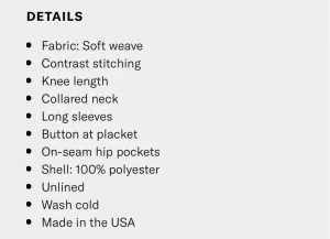 • Shirt-dress length and styling making it suitable for work, dinner, or special events