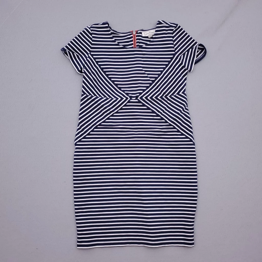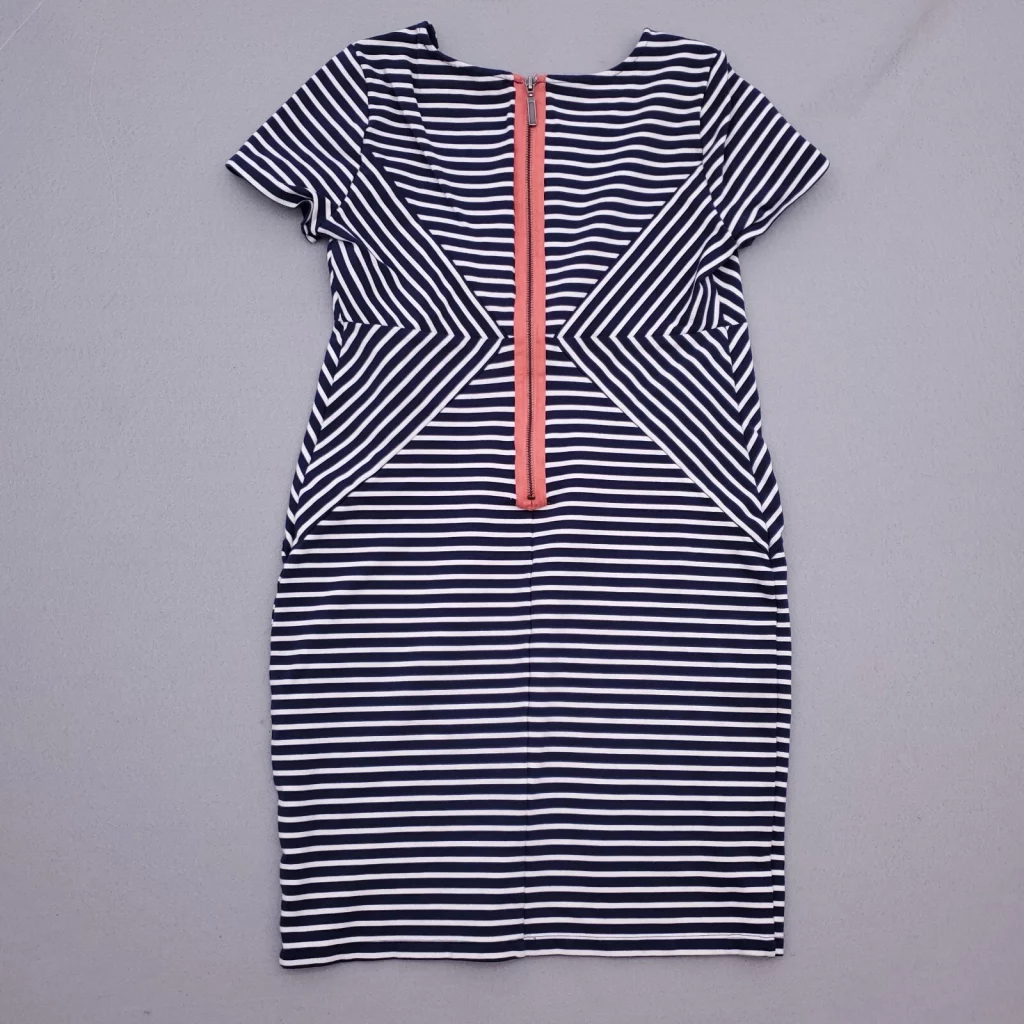 Cozymomstyle navy blue striped zipper maternity dress medium size for office