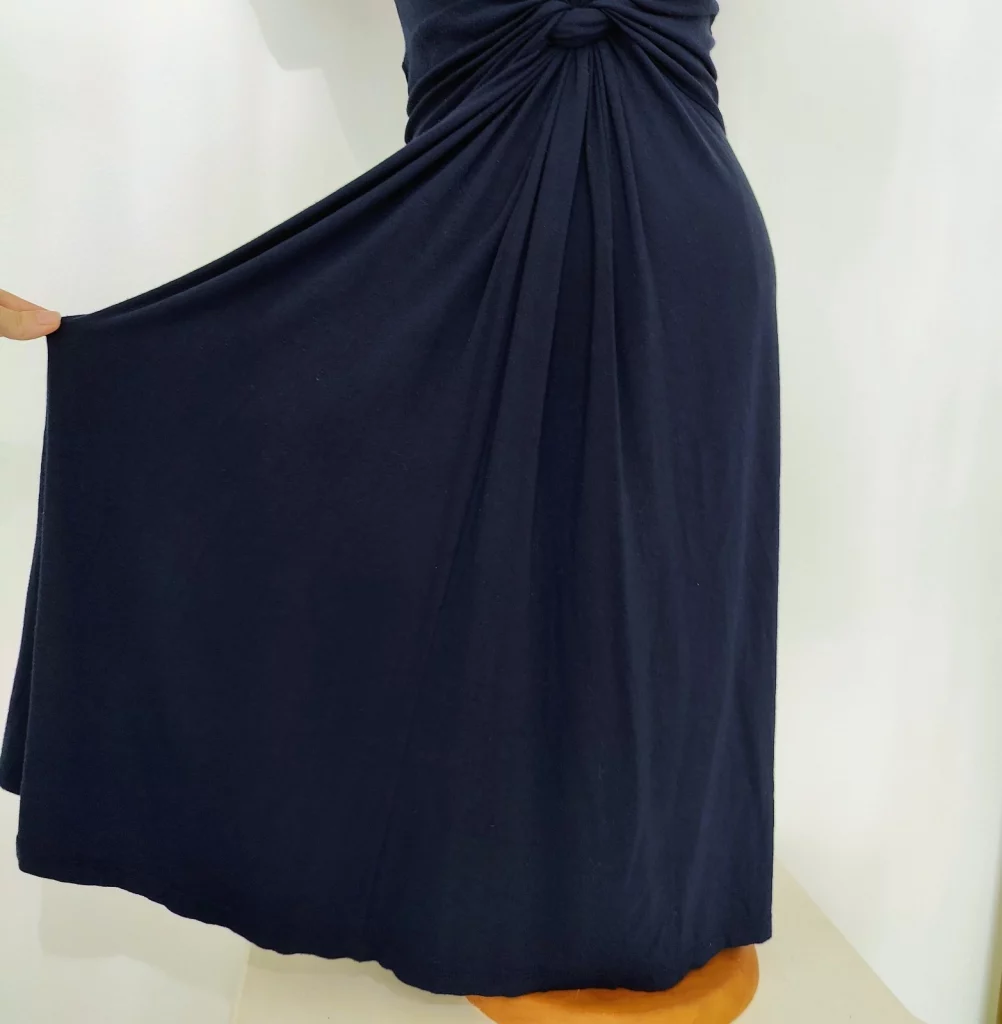 The Seraphine knot front design creates a soft drape over the bump and defines the waist for a flattering, feminine shape. The stretchy fabric moves with you and gives you coverage without feeling tight. Perfect for every stage of pregnancy.